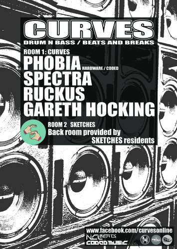 11/12/2010::CURVES:History of Drum and Bass Good to be back. CURVES Presents A History of Drum and Bass - Saturday 11th December 2010 Main Room Phobia (2005-2010) Ruckus (2000-2005) Spectra (1995-2000) Gareth Hocking (1992-1995) Room 2 Sketches DJs £4 entry on the door from 10pm - 3am @ Reds Bar Northumbria University