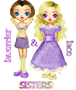 Lavender and Lace, make 2 dolls wearing lavender and lace, include the word sisters on the doll.