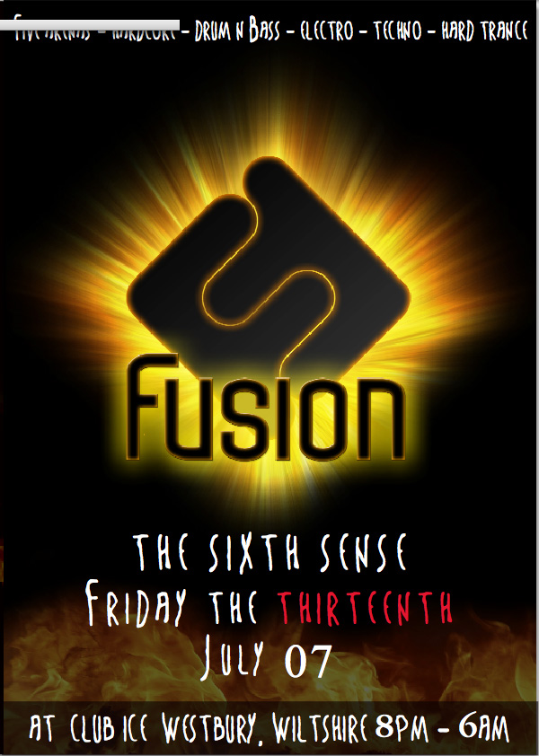 fusion presents the 6th sense fri 13th july FUSION ‘6TH SENSE’ – FRIDAY, 13TH JULY @ CLUB ICE, WESTBURY Welcome to fright night...Fusion style! We invite you to join us for our first themed party of 2007 and we could not have picked a better date for the occasion! '6th Sense' see's us assemble our scariest line-up yet, with an array of the undergrounds biggest hard hitters in attendance! This event also welcomes a first for Fusion, as we invite the boys from North to host the Techno & Hard Trance arena! Add to that a Hardcore line-up of epic proportions, a Drum & Bass room to bring the house down & an up & coming arena with an insight into what the future holds for our scene and '6th Sense' really does have it all... Ever heard of memories you take to the grave with you...? This is one of them! See you on Friday, 13th July ravers! The Fusion Crew. FUSION - Hardcore Arena: HIXXY RE-CON SQUAD-E SLIPMATT GAMMER RAMOS & SUPREME SUNSET REGIME MARC SMITH OVERLOAD VS EKSTA-C VS FLYIN’ STORMTROOPER VS DRUID GEOS CREW VS CHUNKY BOYS MC’S: STORM / WHIZZKID / CASPER / ODYSESSY / KNIGHT / SCOTTI-B NORTH – Techno & Hard Trance Arena M-ZONE CALLY & JUICE ANDY VORTEX RIBBZ TRIPOLI WRAGG PAUL DEE NICK THE KID HOSTED BY: RIBBZ & SI THE SIGH DROPZONE – Drum & Bass Arena HAZZARD NICKY BLACKMARKET WINK PROPOLTION DEEP JUDDA KLIP DARK DEAN VESTA WEETAMIX MC’S: DOUBLE L / SENSE / MATTY C / SKYDRO Q-BIC & HARDCORE DISTORTION – Up & Coming Arena PROJECT BOSH WINK JBC RALPH MIGNANO VS OUTBURST CLODHOPPER DJ A CADDY VS HATTY IGNITE VS LEE KB DJ X VS EXALT BISHOP REEGZ CARTEL – Twisted House Arena PHIL THOMPSON FUTURE FREAKZ TIM COOK TOMMY MUNDELL & FRIENDS £20 ADVANCE TICKETS / SMS Coach / Travel Info: • COACH & VIP ENTRY (No Queuing) £35 (No Booking Fee) South Coast: Club Tours Coach Service – Ernie 07973 551171 / ernie@southcoastflyers.co.uk Pick Up Areas: Chichester / Portsmouth / IOW / Fareham / Southampton / Basingstoke / Salisbury / Winchester South West: Eventz Travel – Jon: 07779 232854 Pick Up Areas: Cornwall – Penzance / St Ives / Hayle / Camborne / Redruth / Helston / Falmouth / Truro / Newquay / Wadebridge / Bude / St Austell / Bodmin / Launceston / Callington / Liskeard / Saltash. Devon – Exeter / Honiton / Torquay / Axminster / Ilminster / Bideford / Barnstaple / Tiverton / Okehampton / Cullompton Somerset – Taunton / Yeovil / Bridgewater / Highbridge / Burnham-on-Sea Dorset – Bournemouth / Poole / Dorchester / Bridport Bristol: Kushti Coaches, Bristol - Contact Antony: 07979 272412 or email: djd-ice@delerium-rave.co.uk Ticket Info: Tickets available from www.turbulence-hardcore.com via Paypal & all major credit cards (logo’s) FUSION ‘6th Sense’ SMS TEXT MESSAGE GUARANTEED ENTRY SYSTEM Each SMS sent from a mobile handset will automatically allow 1 clubber guaranteed entry to the event. Text SIXTH, followed by your first name, then surname to 81282. You will then receive an automated SMS back, which will contain a unique dedicated guaranteed entry number. You will need to quote this on arrival at the event. No SMS back, then you did it wrong – so try again!!! Example Msg: SIXTH (SPACE) FIRST NAME (SPACE) SURNAME TO: 81282 For Instance - ‘SIXTH ANDREW MILLS’ To: 81282 NB: FUSION SMS SERVICE COST IS £1.00. This Charge Is A One-Off Fee! Full Terms & Conditions? Check Out: www.turbulence-hardcore.com SMS Support Line: 0870 850 5823