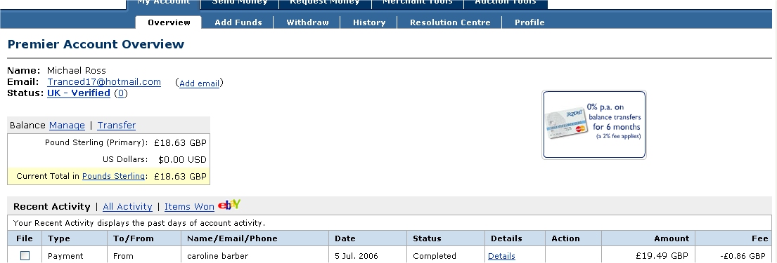 Just sold something on ebay and although the correct money is displayed in my paypal accounts page it hasn't transferred to my bank account yet.