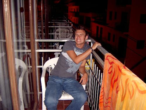 Cheesy Stephen on our pathetic balcony