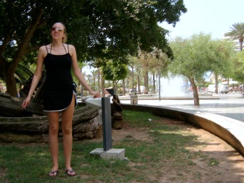 Claire with the water fountain in the background