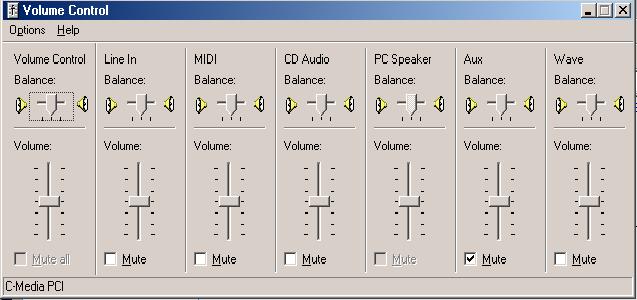 He's obviously found the volume control as he mentioned mute Some shitter sound cards wont let you play say the cd and line in at the same time try muting everything bar, main volume/play control, wave, Line In (if ur running ur sound through your line-in you may be running it through your mic)