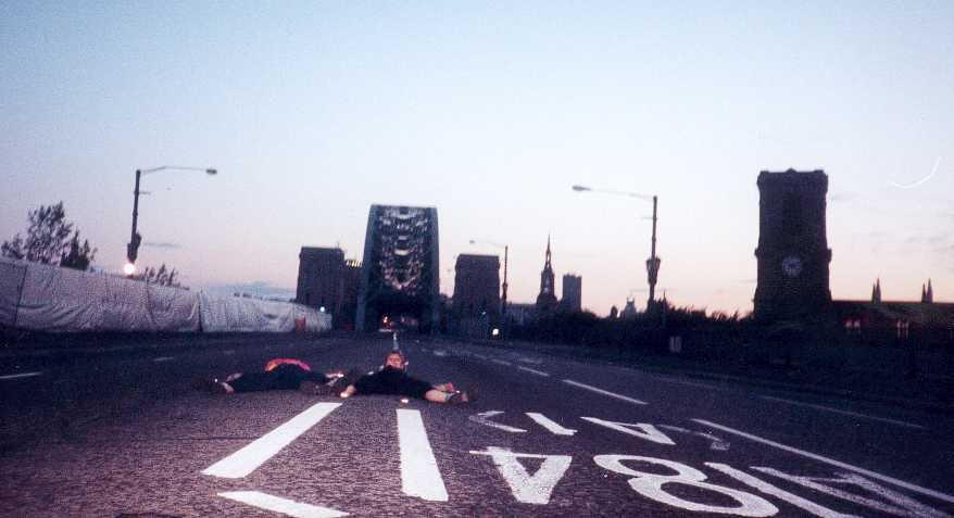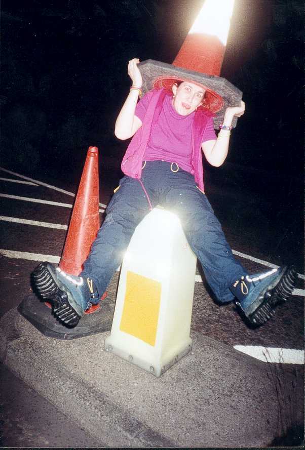 the not so traditional sit in middle of motorway wid cone on head whilst walking to the garage for fags