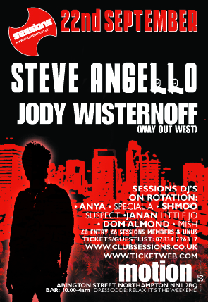 steve angello @ sessions northampton fri 22nd sept Its a SESSIONS special on Sept 22nd! STEVE ANGELLO & JODY WISTERNOFF ( WAY OUT WEST) It all kicked off for Steve Angello when he released ‘Woz not Woz’ alongside fellow Swede, Eric Prydz in 2004. It was released on CR2 Recordings and elevated Steve to become one of the most in demand producers, remixers and djs of 2005. This year alone has seen Steve have two top 5 club hits, remix the likes of Moby, Goldfrapp, Royksopp and Deep Dish , release a Subliminal Sessions cd, be nominated for ‘Best Producer’ at the House Awards, and also win the acclaimed ‘Best Newcomer’ (alongside partner in crime, Sebastian Ingrosso) at this years DJ Awards in Ibiza. At 22 years old, Steve has earnt the reputation as a consistently fresh talent, a vehicle for which is his label, Size Records. Drawing heavily on influences such as Daft Punk and Carl Craig, Size Records was conceived in 2002 , and has since had thirteen rollicking releases, most recent being the 2 hits, Who’s Who? "Not So Dirty" aka Steve Angello and Full Blown ‘Some kinda Freak’. The label has received massive support from the biggest dance superstars like Pete Tong, X-Press 2, Roger Sanchez, Funk D’Void, Carl Cox , Alex Neri, Norman Cook , Armand Van Helden, and Erick Morillo to name a few. It was in early 2005 when Erick (Morillo) recognised the potential of Steve and Seb in signing them immediately to his Subliminal team… Steve and Seb went on to mix Subliminal Sessions 8 alongside Jose Nunez which was released in May 2005… this was to be one of the most popular Subliminal cds and would see Steve & Seb securing residencies at the infamous Subliminal parties at Pacha, Ibiza. If you have been lucky enough to witness one of their gigs, I am sure that it would be your Ibiza memory of the year! Steve’s highly charged sets have scored him thousands of adoring fans around the World! Djing every weekend non-stop for the last 12 months, his diverse sets keep the crowds electrified, and no matter how many times you see him play, you will rarely hear the same track twice! His ability to connect with the crowd is intense, and it is as if he reads your mind when you hear the bass drop of a track you have been waiting all night to hear. The music screams at you; passion; commitment; dedication; focus; drive; and energy: music is no idle pastime for Steve, it’s everything. It’s hard to believe that the quality of the music comes from someone so young but Steve pulls it off. In addition to all this, Steve’s appeared on Radio 1 with Pete Tong earlier this year, and has since been asked back to record an exclusive Essential Mix with Sebastian to be broadcast in September. This is further to Steve featuring on the 3G Tong Mobile Show, where he was labelled a hero of 2005. Being no stranger to this accolade, Steve says, “I’m just lucky to be doing what I’m doing. If I didn’t have the music I don’t know where I would be today. I’m just happy and trying to enjoy life!." So what does the future hold for this remarkable young man? Lets just say, a continual release of amazing top quality tracks on the Size label, a possible compilation cd to be released next year, an album with his partner Sebastian, and a remix of the Eurythmics classic "Sweetdreams."