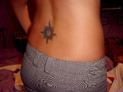 I have my tounge pierced which Im very bored of now but Stephen doesnt want me to take it out. And my belly button which I wear occassionally. I also have a tattoo on the bottom of my back (see below). Ive wanted another one for ages on my knicker line on my tummy but I cant seem to find one I like :(