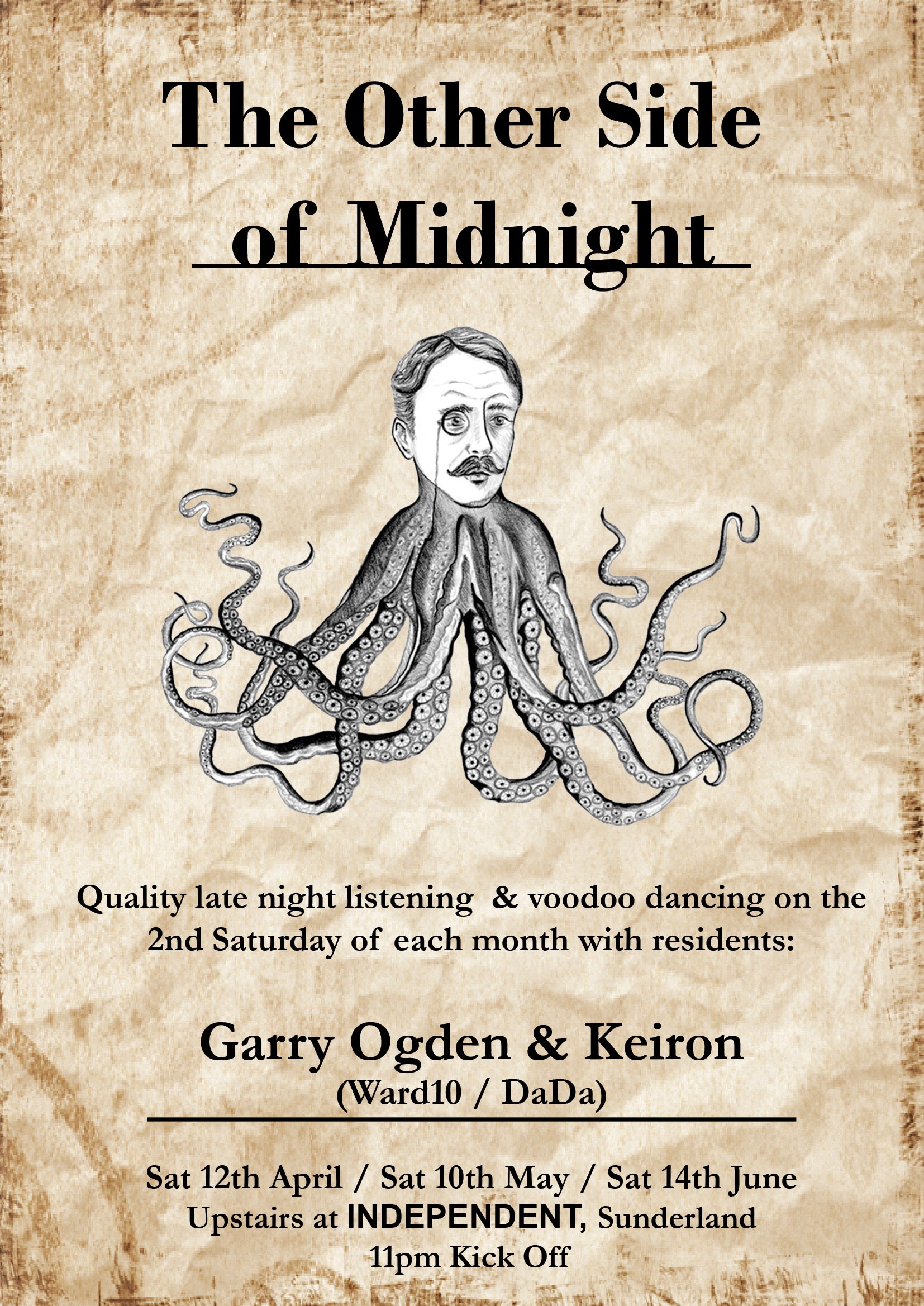 The other side of midnight.... Quality late night listening and voodoo dancing in sunderlands finest drinking den... A house party in its truest form, we'll be playing music right across the board...no boundaries On the 2nd Saturday of each month we will be taking over room 2, upstairs in independent, which is perfect for what we want to do...a hidden, dingy, loft type space...the other side of midnight... Residents DJ's Garry Ogden Keiron (Ward10/ DaDa) 11pm kick off
