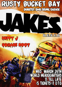 Wed 24/3 Rusty Bucket Bay Presents JAKES HENCH@WHQ 11pm to 3am £7 £5 advance Last minute but have been asked to step and put the whole system into WHQ for the night so you know this is going to be the most Bass Heavy party this wednesday. Awww what? Rusty Bucket Bay is back? Again?! Fuuuck! After such good vibes from last months party we're back with a ruuuude line-up. Ladies and Gentlemen, Boys and Girls Rusty Bucket Bay Presents..... Jakes (H.E.N.C.H) (http://www.myspace.com/jakeshench) 1,2,3 in tha place to be, as it is plain to see he is JAKES!!! 'The Daddy' of H.E.N.C.H Records, Jakes is the Don of Bristol when it comes to dubstep. From spitting over TC's tracks, 'Deep', 'Haterz', 'Drink' and more, to gaining recognition as a producer in his own right. His huge bassline monsters ‘3k Out’, ‘Rock The Bells’, ‘Warface’ and ‘Warp 9’ are wrecking clubs all over the country and further afield! Mixing up his trademark D&B badness with the bass-heavy, jaw-dropping dubstep tunes straight from the heart of the Bristol dubstep scene, Jakes is going to be a BIGGUN! Check these out... Rhythm - [ame="http://www.youtube.com/watch?v=TogbwB70pKw"]YouTube- Jakes - Rhythm[/ame] Warface - [nomedia="http://www.youtube.com/watch?v=xfGn9kFfwKc&"]YouTube- Jakes - Warface[/nomedia] Warp 9 - [ame="http://www.youtube.com/watch?v=qP_7CquCLLA"]YouTube- Jakes - Warp 9[/ame] 3k Lane - [ame="http://www.youtube.com/watch?v=mHe4T0TtDAo&"]YouTube- Jakes & Joker - 3k Lane[/ame] Rock The Bells - [ame="http://www.youtube.com/watch?v=cgCpx043-fc"]YouTube- Jakes - Rock The Bells[/ame] and on the mic... TC feat MC Jakes - Deep - [ame="http://www.youtube.com/watch?v=29k2YtNJ5AE"]YouTube- Tc Ft. Mc Jakes - Deep[/ame] TC feat MC Jakes - Drink - [ame="http://www.youtube.com/watch?v=48LnL-a77Hc"]YouTube- TC Feat. MC Jakes - Drink (Official Video)[/ame] Heppy J The man who met the devil at the cross roads and traded his soul for a pair of technics, and then prison shanked that waste man and got his soul back. For all those who have attended the last few parties will know by now Heppy J serves it up dutty on a rusty plate! Sqaure Root Back again on the wheels of steel and after a tasty set at the last Rusty Bucket, Square Root is gonna get you moving with a supreme selection of Hip-Hop, Dub and Funk. Check his mix out... http://tinyurl.com/sqrootmix Wednesday 24th March 11 till 3 £5 tickets from http://www.wegottickets.com/event/74383 £7 OTD www.RustyBucketBay.co.uk
