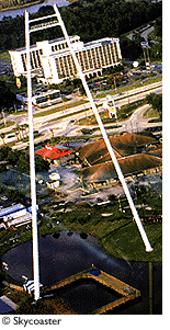 This is probably far worse than a bungee jump.. went on it last time I was at Florida. basically u get this sleeping bag type thing put around you with no handles or anything to hold onto, you're then slowly pulled up to the top of the far pillar, 300ft high, then at the top there's a 3,2,1 fly! countdown where you have to pull your rip cord to send you flying head first down then under the other 2 pillars at 80mph.